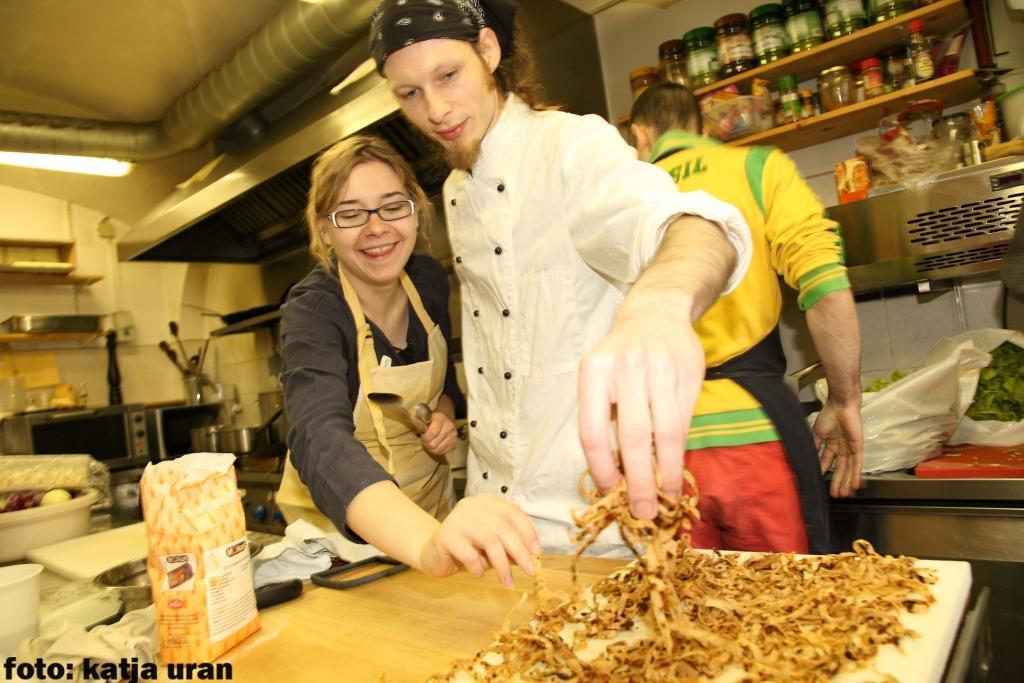 Luka, Valerij in Nataša. Prav vsi so bili našima kuharjema v veliko pomoč pri orientaciji v kuhinji in iskanju loncev, ponev, cedil, kuhalnic, začimb, semen, olj ter vsega potrebnega za kuhanje. Da so gostje ujeli polnost okusov, je poskrbel mlad